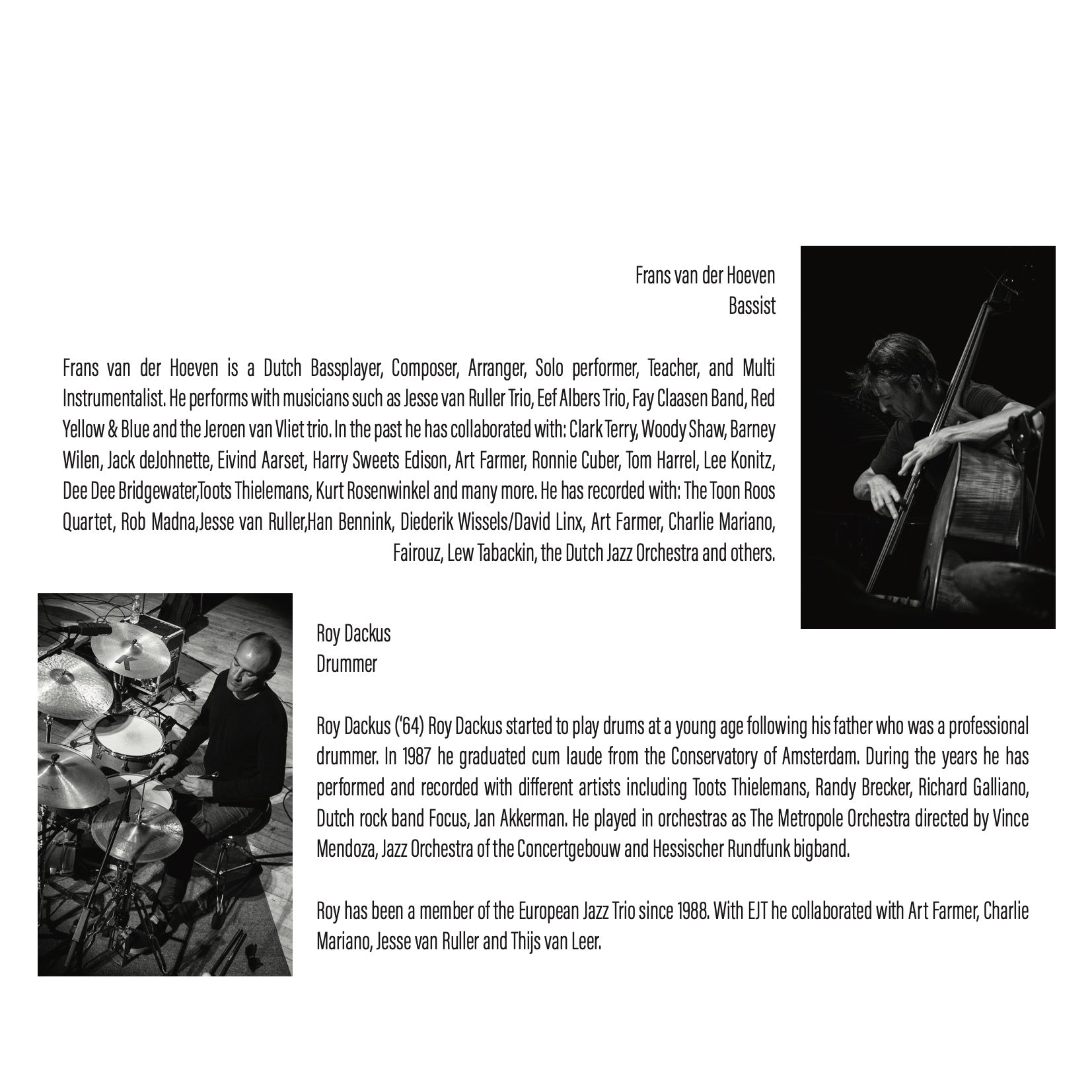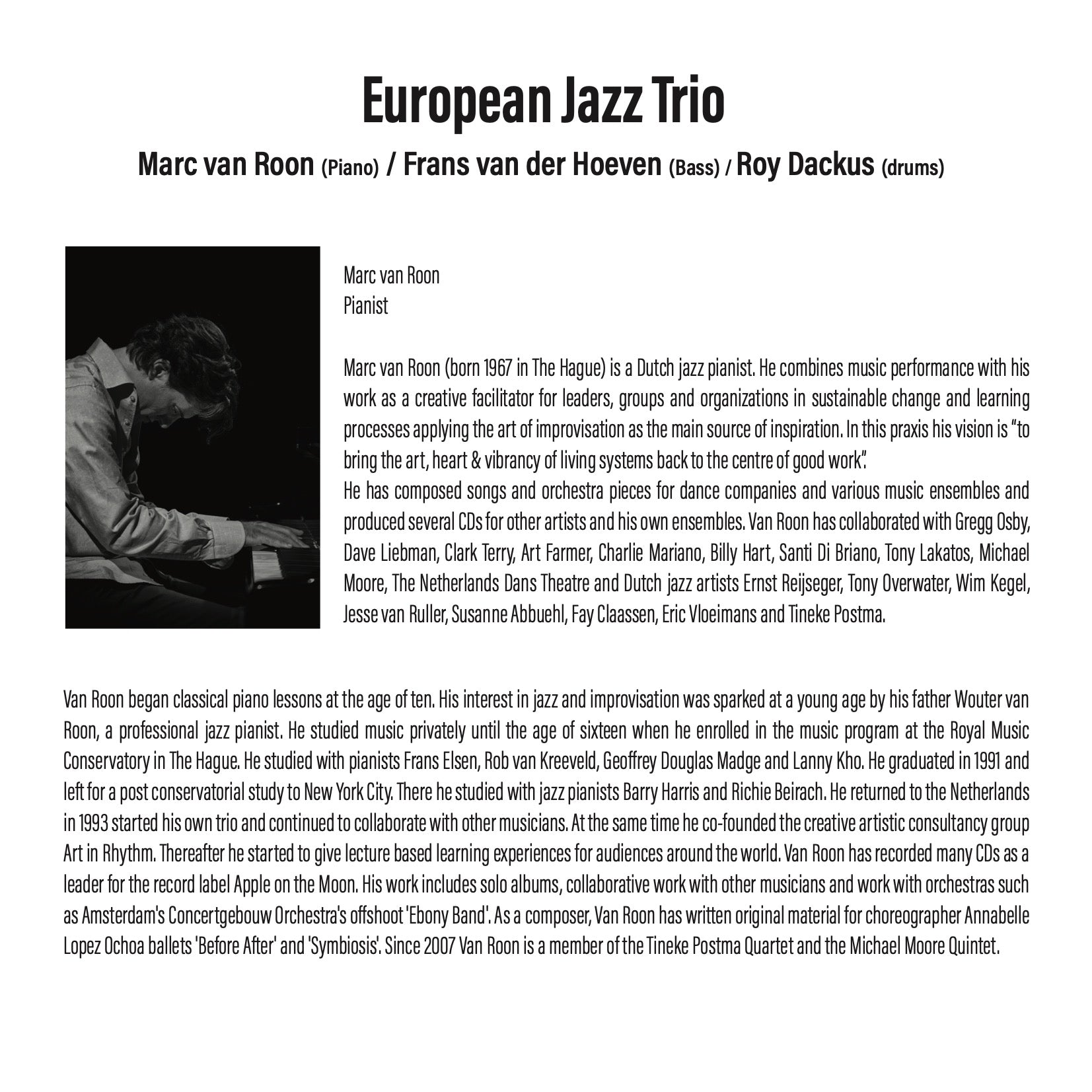 Marc van Roon: piano / Roy Dackus: drums / Frans van der Hoeven: bass